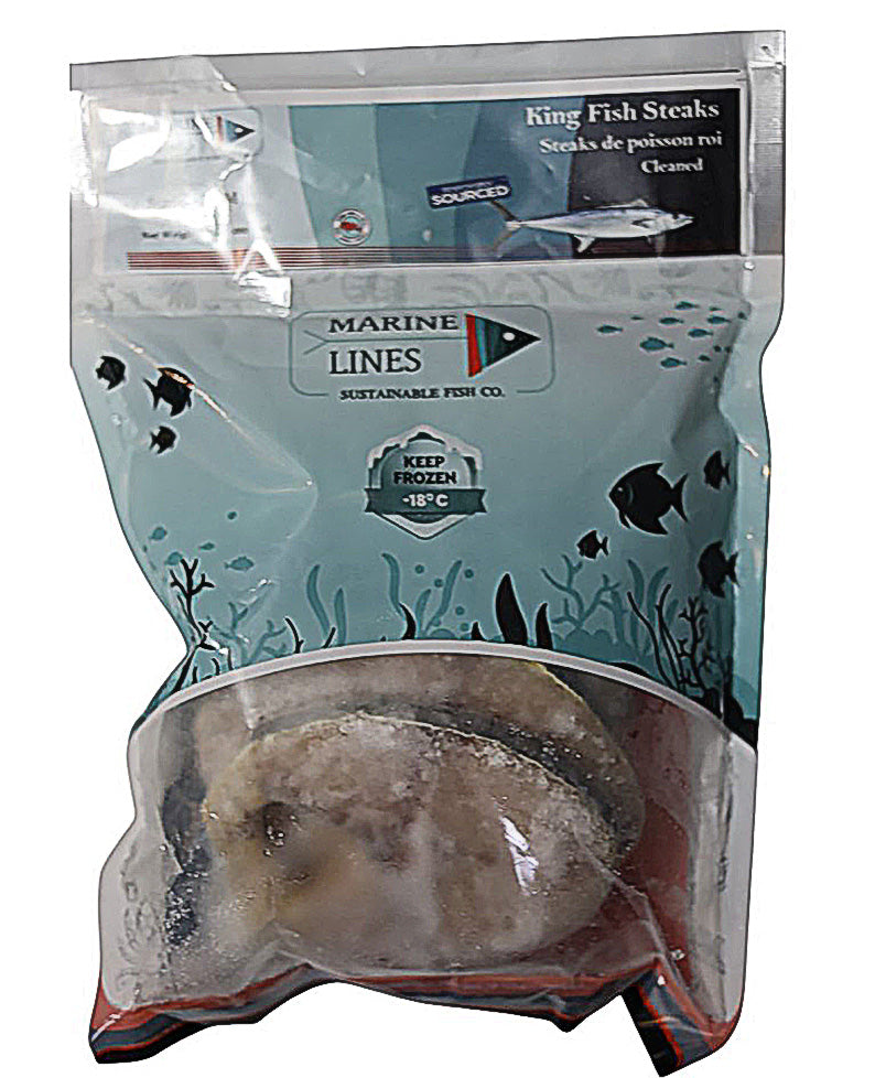 Marine Line King fish steak cut refers to conveniently portioned steaks of King fish (King Mackerel or Wahoo), typically frozen and offered by the Marine Line brand. Known for its firm texture and rich, full flavor, these cuts are versatile for various cooking methods like grilling, frying, baking, or curries.